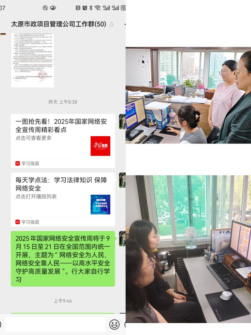 9月15日至21日,項目管理公司黨支部開展“學法用法強本領 同筑安全防護墻”專題活動。此次活動聚焦《網絡安全法》《數據安全法》《個人信息保護法》等核心法律條規,結合生活中常見的網絡詐騙、信息泄露等案例進行解讀與分析,引導黨員干部把所思所學融入工作與生活,不斷增強辨識與抵御網絡風險的能力,爭當網絡空間清朗環境的維護者、踐行者。