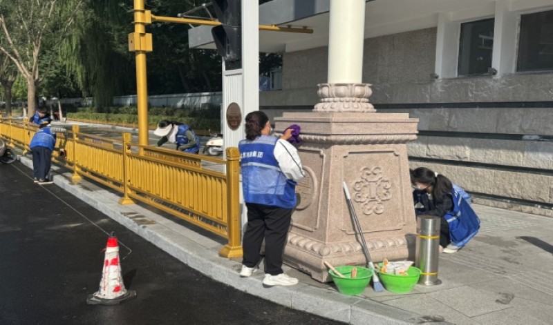活動自9月4日起為期六天,覆蓋迎澤大街(西段)全線,重點圍繞附屬設施清潔與道路精細化維護展開?;顒又?,身著統一藍色“太原市政集團”馬甲的志愿者們,手持長柄擦洗器、水桶、抹布、鏟刀、掃帚等工具,對道路兩側公交站臺、路燈基地、護欄、照明燈桿等設施進行系統清理與擦洗;同步推進地磚灌縫精細化維護作業,通過專業操作,確保每一條裂縫都“嚴絲合縫”,有效提升路面耐用性與通行舒適度,以實際行動為市民出行安全與舒適保駕護航;同時,志愿者專門對道路沿線的石頭字景觀展開描金作業,細刷蘸取金色涂料,一筆一畫精心描摹,成為主干道上一道兼具文化氣息與視覺美感的獨特風景。