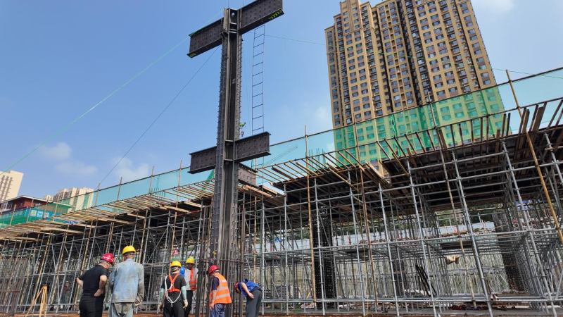 六十二中新校區“空中操場”完成鋼柱、鋼梁吊裝和焊接工序